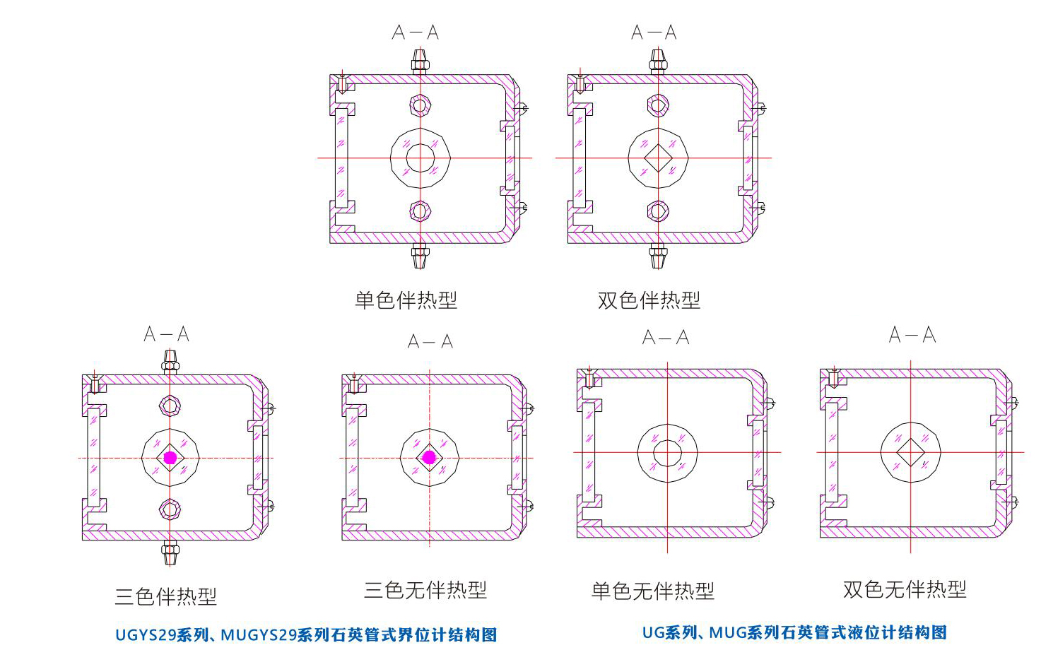 該系列產(chǎn)品根據(jù)使用環(huán)境溫度不同,分為基本型和伴熱型,伴熱型解決了因環(huán)境溫度過(guò)低介質(zhì)凝固而造成虛假液位的難題。