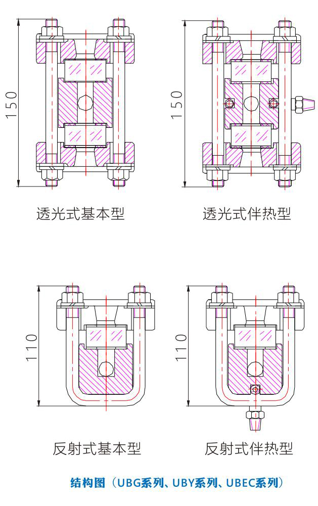 UBG系列、UBY系列、UBGY系列高溫高壓玻璃液位計(jì)由表體、上閥門(mén)、下閥門(mén)、排污閥(或排污法蘭)、放空閥(或放空堵頭)組成。上下端安裝法蘭與容器上對(duì)應(yīng)法蘭相連構(gòu)成連通器、透過(guò)玻璃板可直接觀察到容器內(nèi)液位的實(shí)際高度,上、下閥門(mén)內(nèi)均設(shè)有安全保護(hù)裝置,當(dāng)玻璃板意外損壞時(shí),保護(hù)鋼球在容器內(nèi)壓的作用下自動(dòng)密封,防止容器內(nèi)液體繼續(xù)外泄。